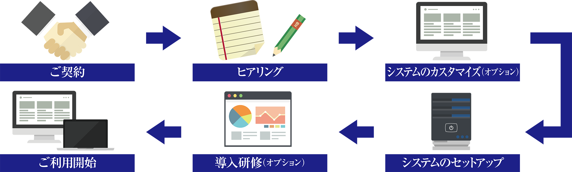 企業様によって経営上の価値観が異なることも様々なため、独自の運用や概念など存在する場合もあるかもしれませんがご安心ください。基本機能の範囲でご満足頂けない場合にも追加や変更を行うことが可能です。各企業様に合わせたカスタマイズで各社が目指す事業成果につなげられるよう工夫することができます。